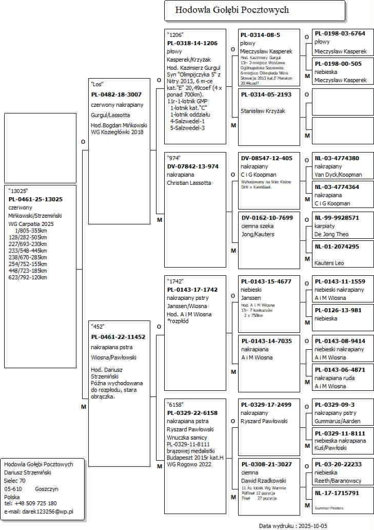 | Lot | Data | Dystans [km] | Ilość gołębi | Pozycja | Prędkość [m/min] |