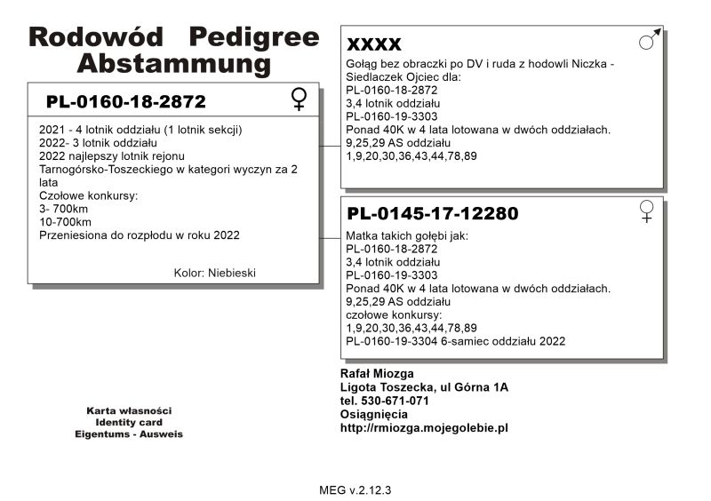 2009 - 2023 - Oddział 0160 Toszek, 2024 - 2025 Oddział 0266 Strzelce Opolskie. Moje osiągnięcia z lat 2020-2025 //2020 I-V-ce Mistrz Rejonu Ziemi Tarnogórsko-Toszeckiej gołębi młodych, II-V-ce Mistrz Oddziału gołębi młodych mistrzostwo typowane 15/8, II-V-ce Mistrz Oddziału gołębi młodych mistrzostwo typowane 6 z 40, //2021 II -V-ce Mistrz Oddziału mistrzostwo typowane gołębi dorosłych, II -V-ce Mistrz Oddziału gołębi rocznych //2022 Super Mistrz Oddziału, Mistrz Oddziału w kategorii A gołębi dorosłych, II V-ce Mistrz Oddziału w kategorii M, //2023 Mistrz Oddziału 10 z całości gołębi młodych, I V-ce Mistrz Oddziału gołębi młodych -typowane 25/10, //2024 II V-ce Mistrz Oddziału gołębi rocznych, // 2025 Mistrz oddziału w kategorii GMP I V-ce Mistrz oddziału w kategorii Intermistrzostwo II V-ce Mistrz oddziału w mistrzostwie typowanym II-V-ce Mistrz oddziału w dalekim dystansie //LOTNIKI 2020 - najlepszy gołąb roczny oddziału, 4,5,6 lotnik młody oddziału, 2021- 4,11 dorosły lotnik oddziału, 2022 - 6,13 młody lotnik oddzialu, 2 lotnik roczny oddziału - 10k, 3,5,18 dorosły lotnik oddziału, 2023 - 8,10,11,12,18 młody lotnik oddzialu, 2024 - najlepszy roczny lotnik oddzialu, 9 dorosły lotnik oddziału, 2025 -5,10 lotnik dorosły oddziału, Najlepszy lotnik roczny oddziału (10k), 5- lotnik młody oddziału (6k)