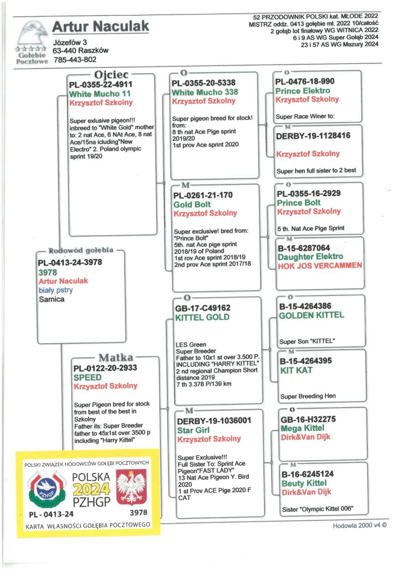Oryginalny gołąb z hodowli Artura Naculaka. Szczegóły pochodzenia w rodowodzie. Więcej informacji pod nr. tel.: 785 443 802