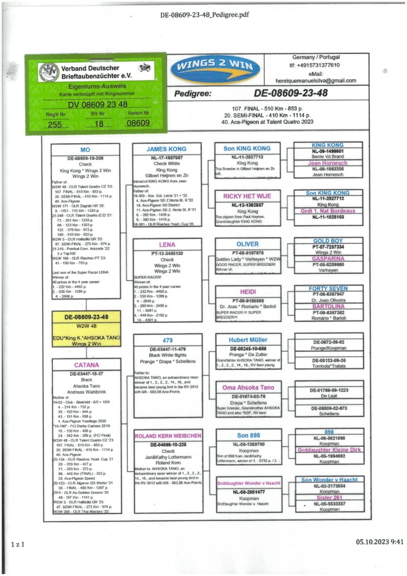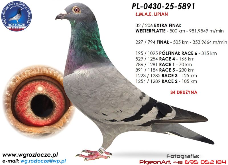 Oryginalny gołąb z hodowli Wings2Win. Szczegóły pochodzenia w rodowodzie. Więcej informacji pod nr. tel.: 785 443 802