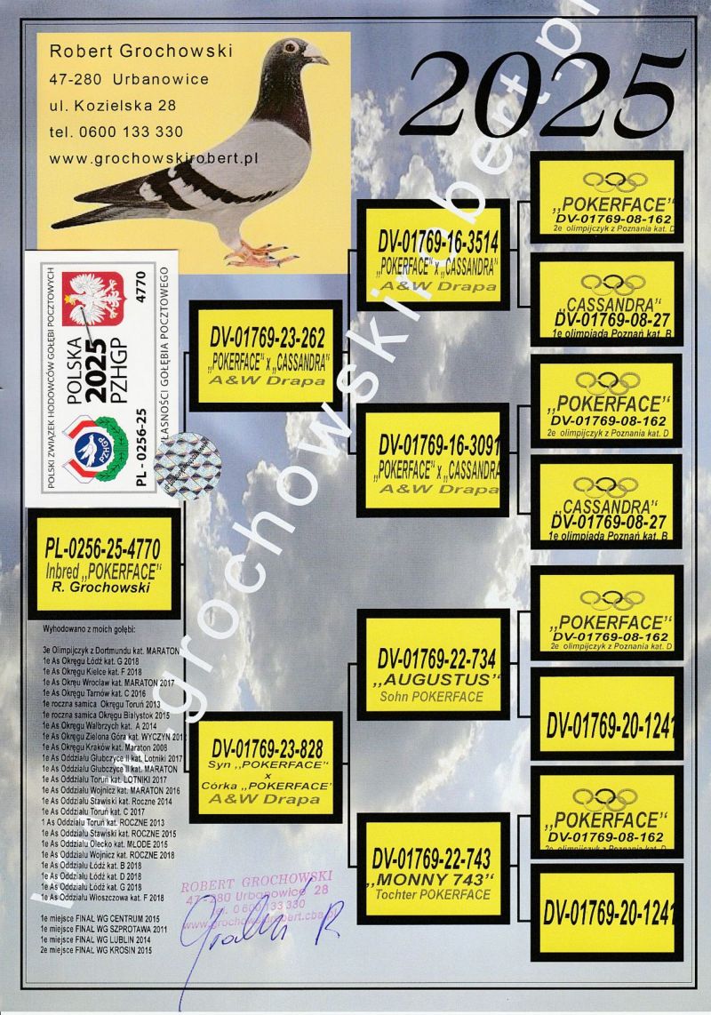 Oryginalny gołąb z hodowli Roberta Grochowskiego. Szczegóły pochodzenia w rodowodzie. Oferowany gołąb to prawdopodobnie SAMIEC. Więcej informacji pod numerem 600133330 Przy opcji "KUP TERAZ" transport GRATIS (do najbliższego miasta od kupującego).