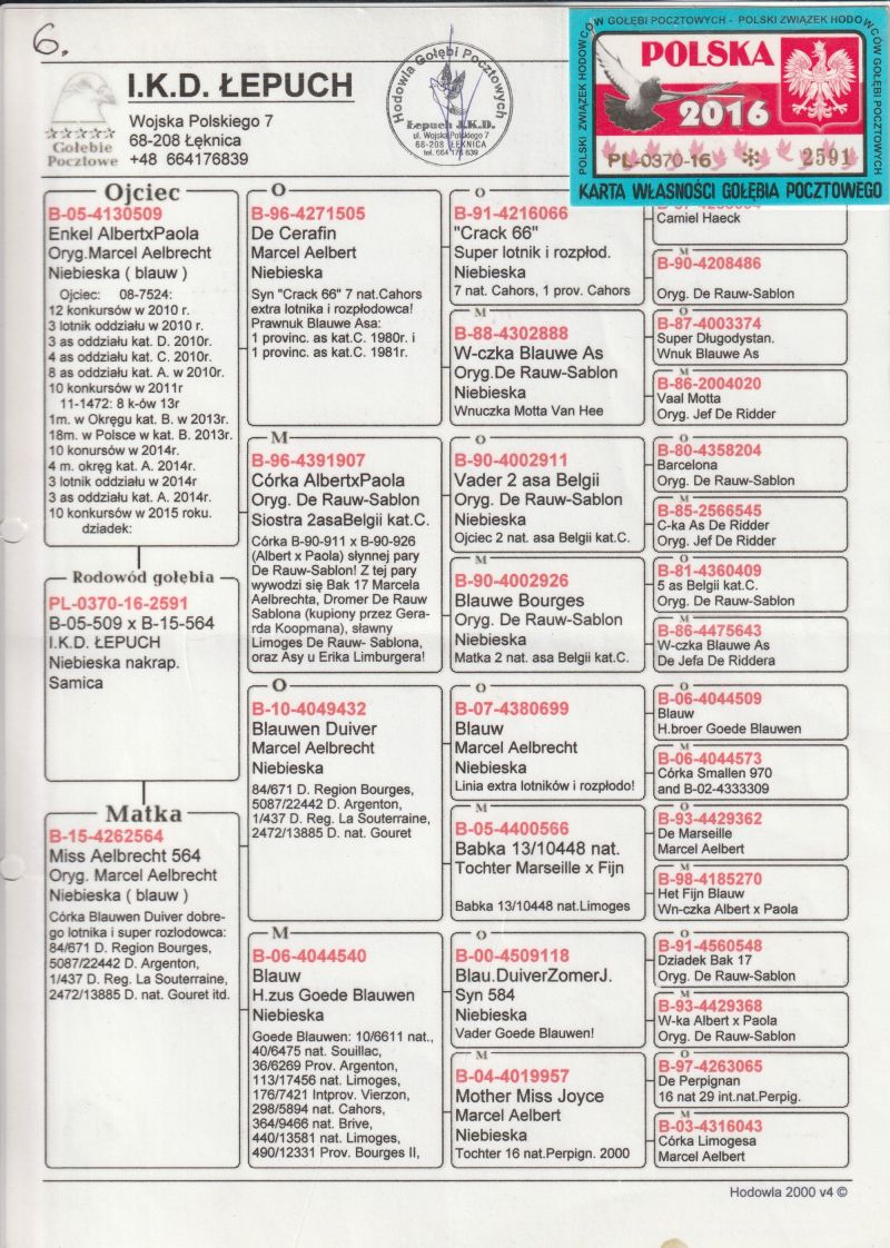 PL-0353-24-9999 - 100% Vercammen BIAŁY jako młody 4 konk-4 wkł - 34 Lotnik Oddziału