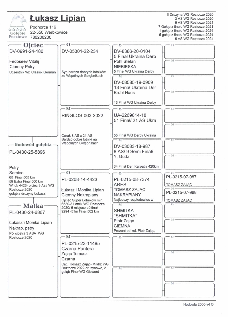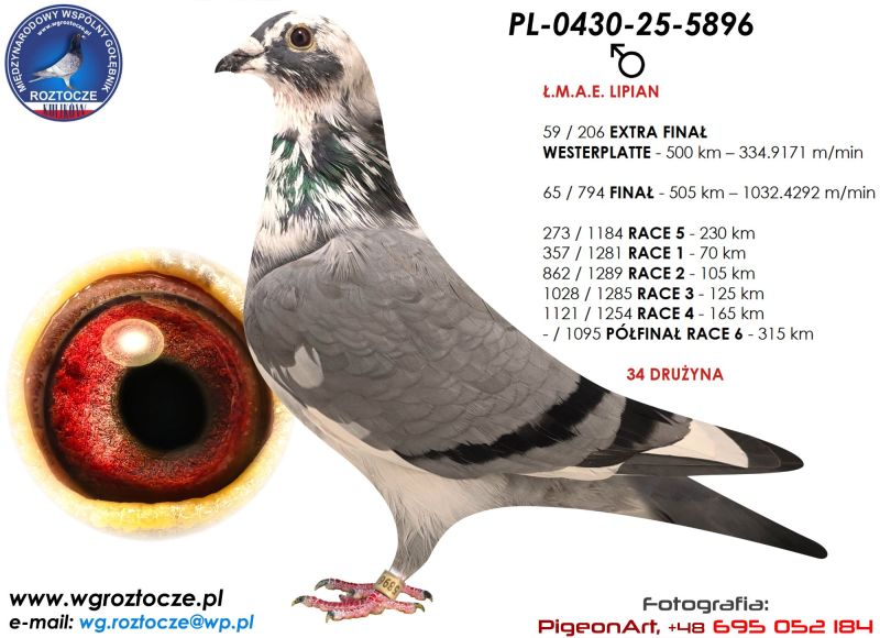 PL-0430-25-5896 WG ROZTOCZE FINAŁ 65poz.505km Extra Finał 59poz.500km 34 Drużyna 2x500km