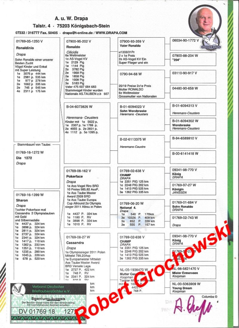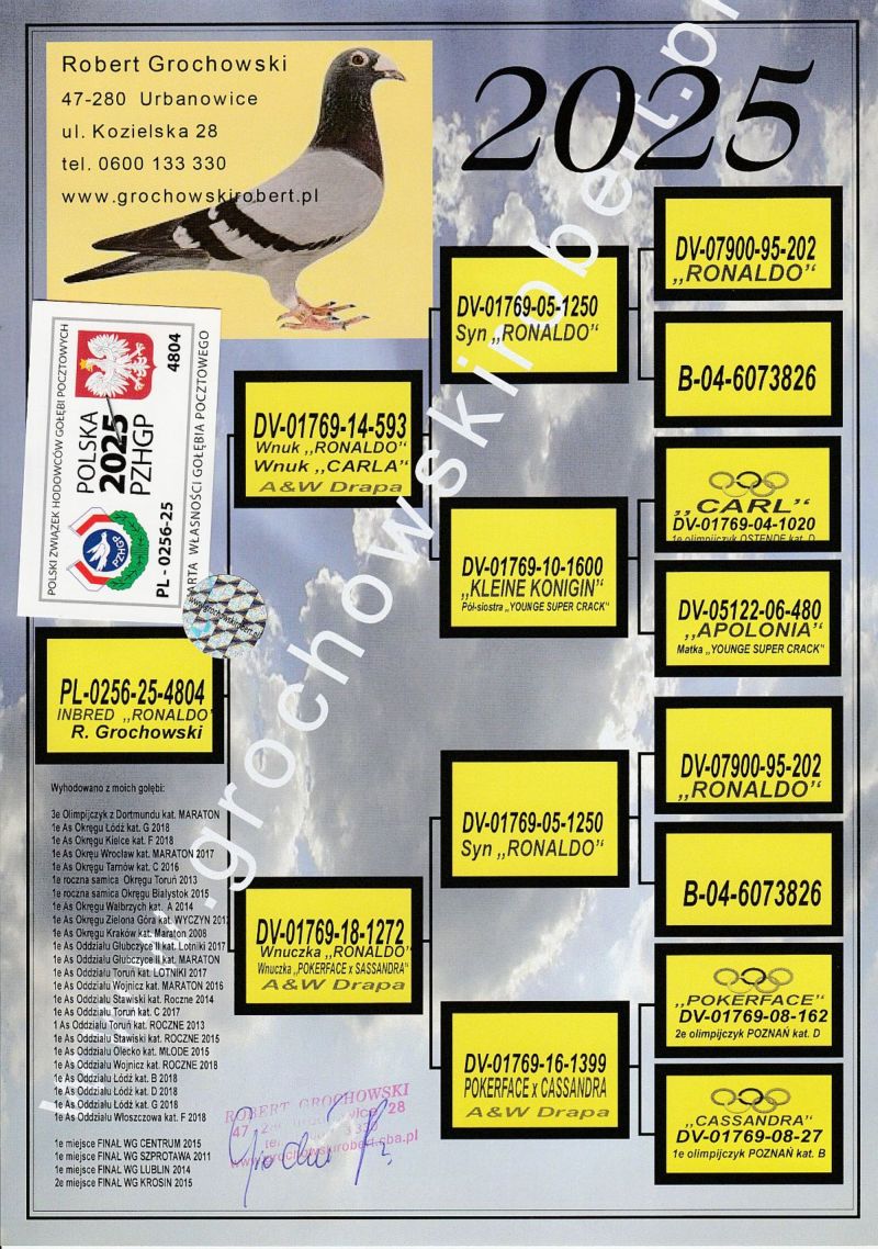 Oryginalny gołąb z hodowli Roberta Grochowskiego. Szczegóły pochodzenia w rodowodzie. Oferowany gołąb to prawdopodobnie SAMIEC. Więcej informacji pod numerem 600133330 Przy opcji "KUP TERAZ" transport GRATIS (do najbliższego miasta od kupującego).