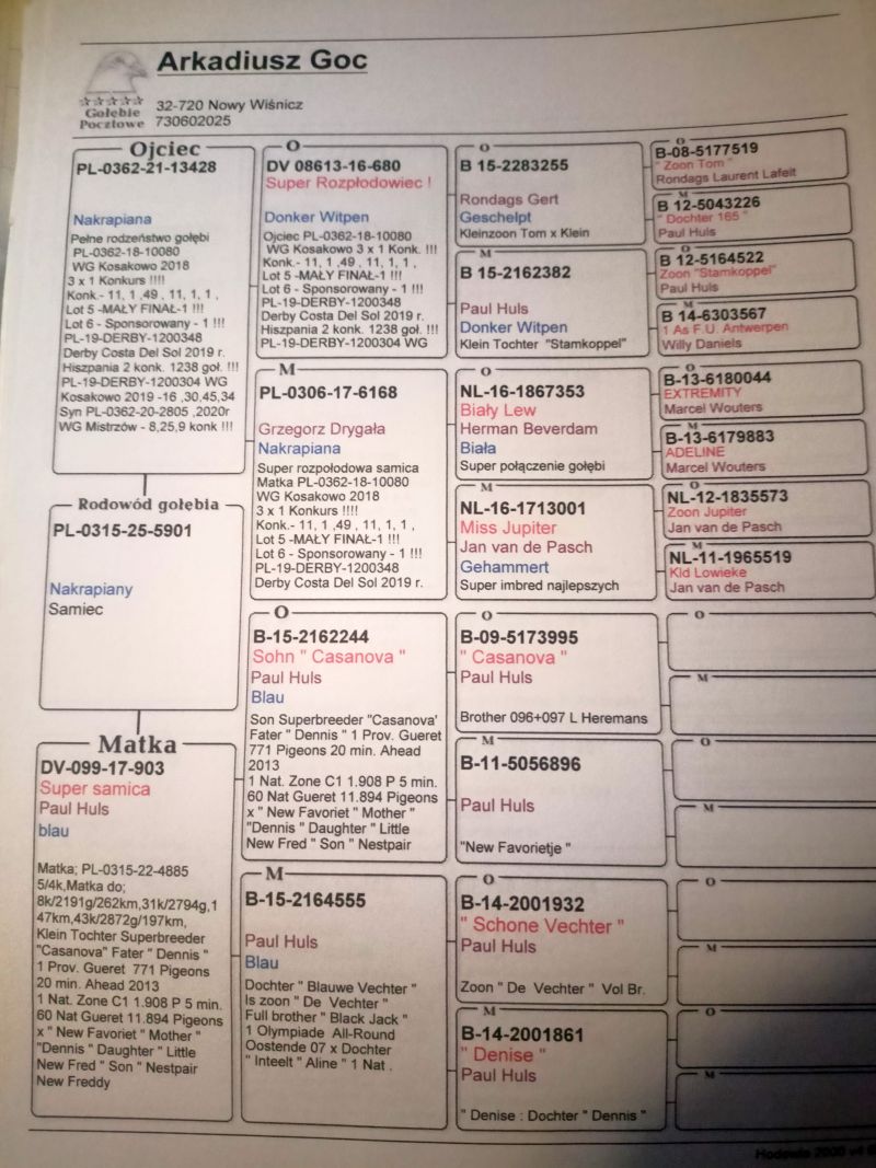 ***LIKWIDACJA HODOWLI*** Oryginalny gołąb z hodowli Arkadiusz Goc. Gołębie były z przeznaczeniem do lotów młodych niestety z braku czasu nie brały udziału w lotach. Gołębie młode 2021rok 2 przodownik 7 z 50, 1 przodownik 10z całości,24 przodownik okręgu Kraków, 2022rok 2 przodownik 7z 50, Vice Mistrz 10 z całości, 2023 rok 2 przodownik 10 z całości, 2 przodownik 10 z 50. Szczegóły pochodzenia w rodowodzie. Więcej informacji pod nr. tel.: 730602025 *Odbiór osobisty lub po uzgodnieniu transportu likwidacja hodowli