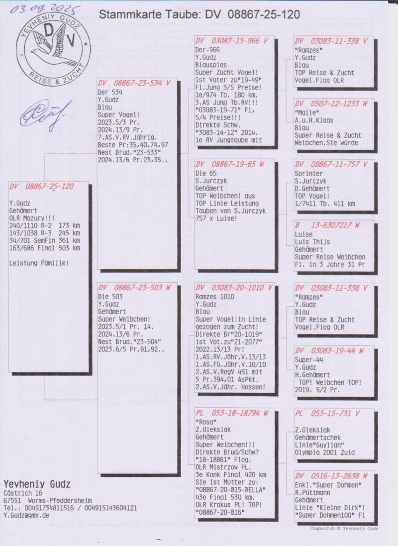 Szczegóły pochodzenia w rodowodzie. Pełne wyniki gołębia w sezonie lotowym na stronie: