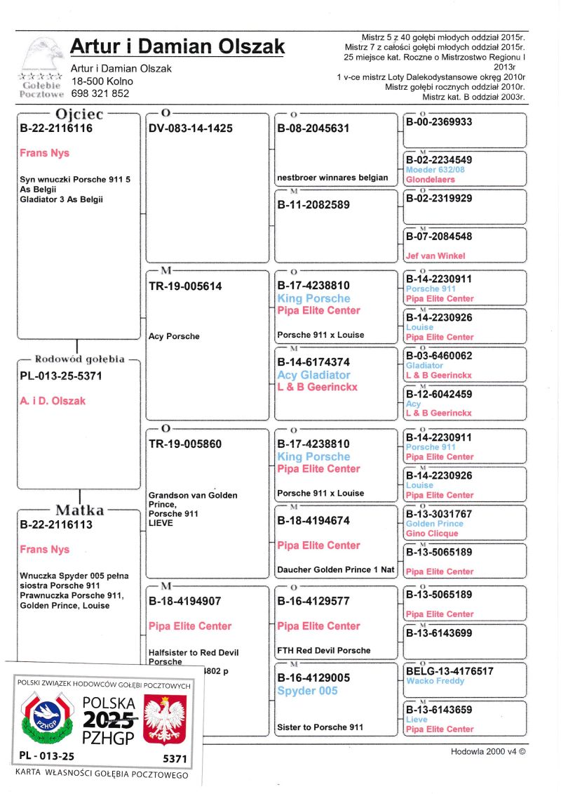 PL-0145-22-3286 - oryg.Radosław Rozniata - Czołowa Hodowla Okręgu,Regionu,MP - Gołębie L.Claessens & Ad Schaerlaeckens