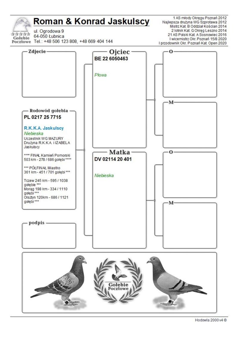 Opis: Gołąb PL-0217-25-7715 - uczestnik 8 edycji OLR Mazury 2025. Ukończył cały program tegorocznej edycji. 278 miejsce z finału, 273 AS OLR Mazury. Szczegóły pochodzenia w rodowodzie. Pełne wyniki gołębia w sezonie lotowym na stronie: oneloftrace.live/lofts/148/teams/4524910/pigeons/35168205 Kontakt w sprawie transportu - Mariusz tel. 575-765-424. Konto do wpłat za gołębie z aukcji: SANTANDER BANK POLSKA S.A. 06 1090 2792 0000 0001 5996 3839 Zapraszamy do licytacji.