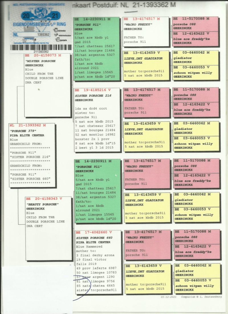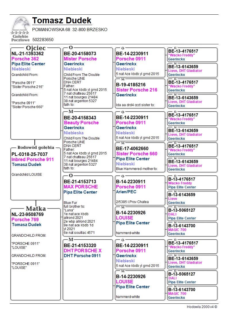 Mamy Państwu do zaoferowania gołębia 7037, Inbred Porsche 911, Louise, Porsche 216, Porsche 660. Możliwość wykonania badań DNA na koszt kupującego. Więcej informacji pod numerem 502 283 650.