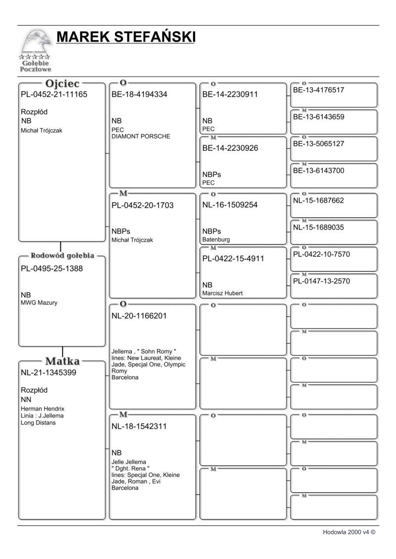 Szczegóły pochodzenia w rodowodzie. Pełne wyniki gołębia w sezonie lotowym na stronie: