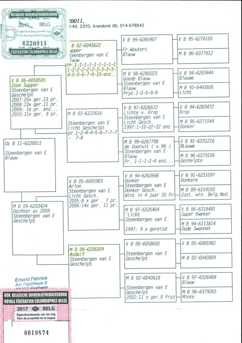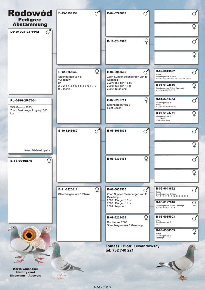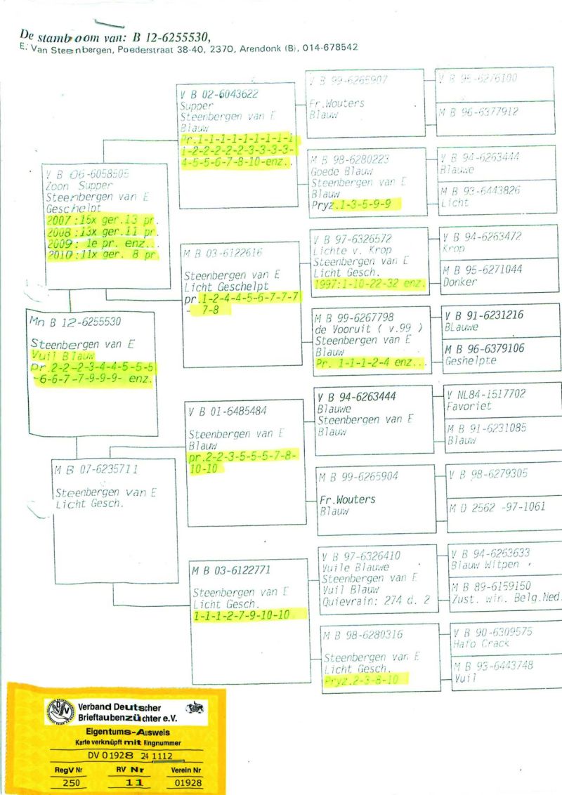Szczegóły pochodzenia w rodowodzie. Pełne wyniki gołębia w sezonie lotowym na stronie: