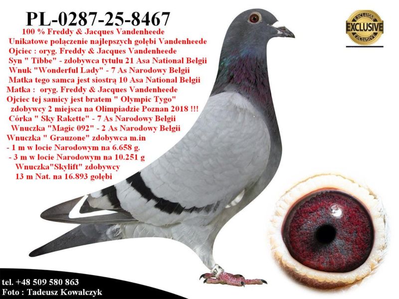 PL-0287-25-8467 - Potomek najlepszych gołębi z hodowli Rodziny Vandenheede