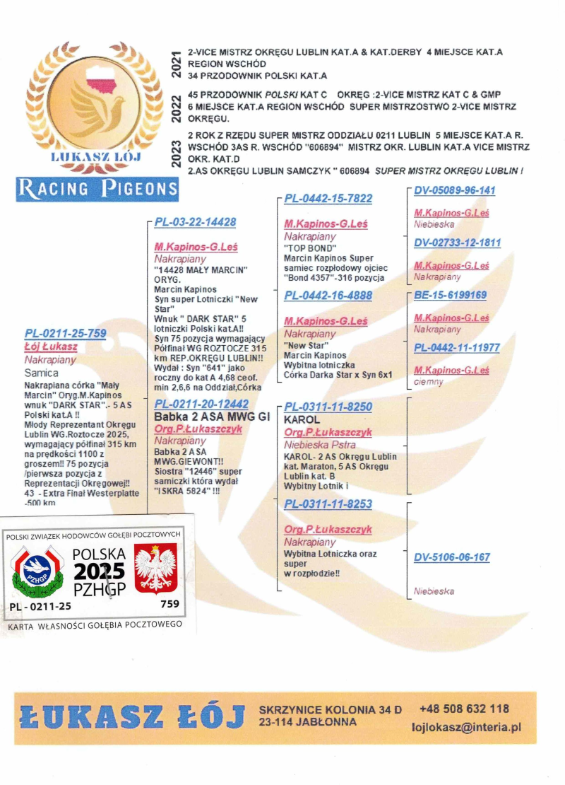 Płeć: samiec Hodowca - rasa: Oryg.ŁÓJ ŁUKASZ Reprezentant Okręgu Lublin Zakończenie: 8.11.2025 godz. 21:54