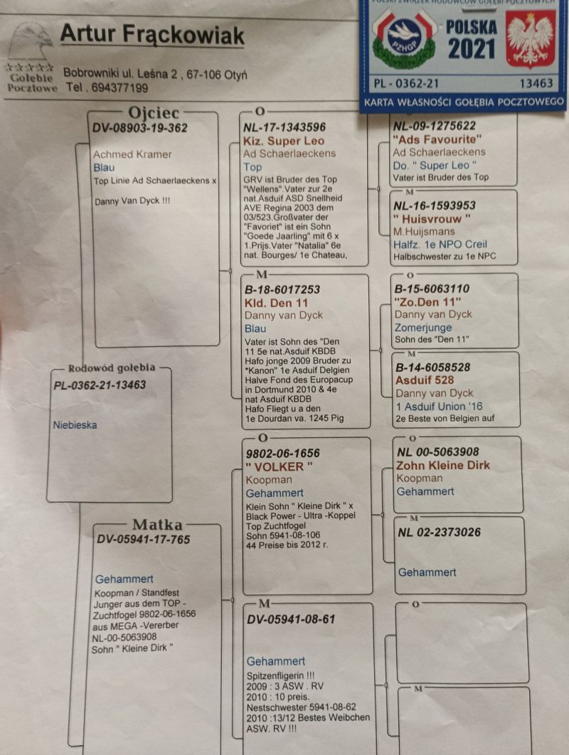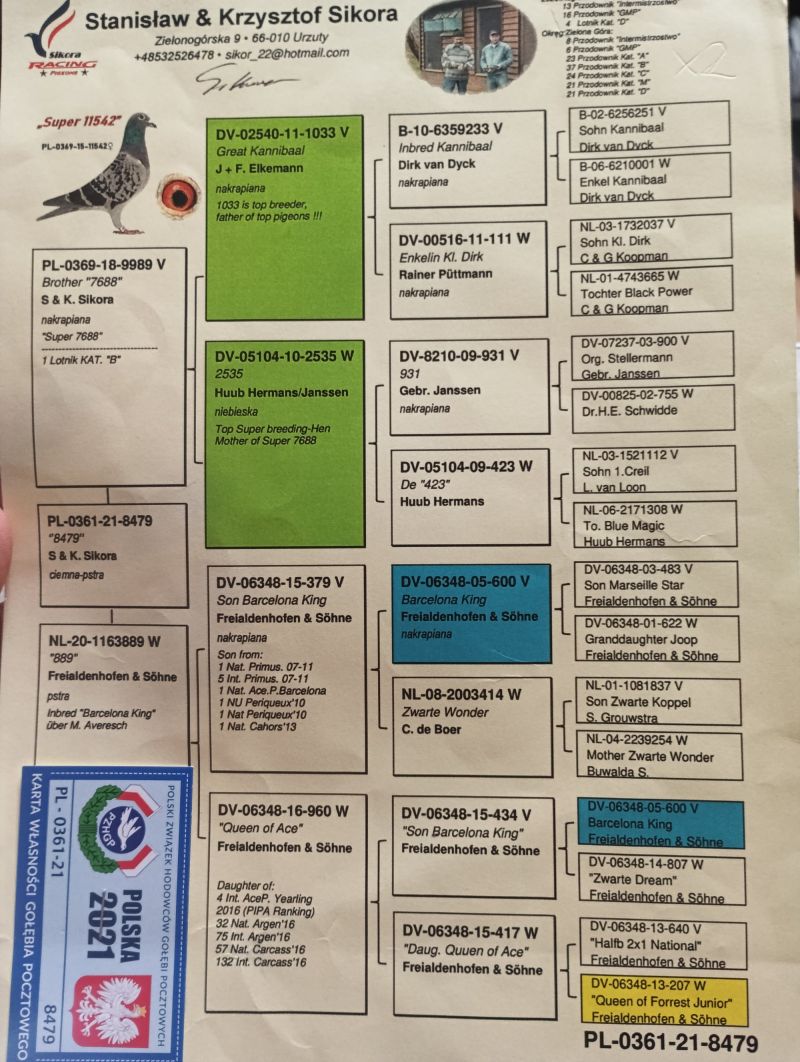 więcej info.w rodowodzie i na stronie Benzing Live. oneloftrace.live/lofts/260?season=2458&tab=flights