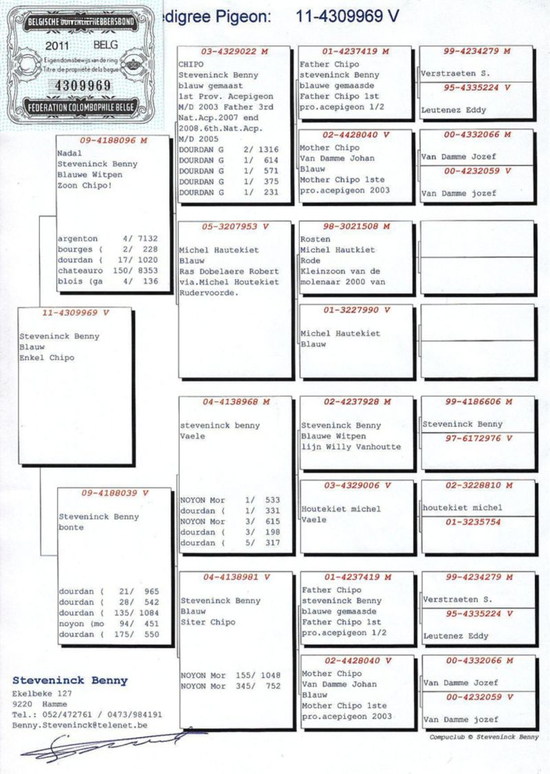 Raczej samiczka, 1/2 siostra do matki 17 asa Polski w kat H 2024 dla Kol Bartka Szóstaka. Wnuczka najlepszego gołębia rozpłodowego na gołębniku - oryg od Gaby Vandenabeele - wnuka "Bliksem" - "461".Wnuczka "9969" super rozpłodowej wnuczki "Chipo" od Benny Steveninck ! "461" najważniejsze referencje z 2024 roku: 1 As Rejonu z 8 lotów rejonowych - prawnuczka 461 u Kol Adama Gasperowicza, prawnuk "461" wygrał finał na WG Podhale wygrywając 50 000 dla Kolegi Bogdana Bieli !- liczba jedynek jego wnuków , prawnuków i oczywiście dzieci będzie około stu a kilkadziesiąt gołębi z 461 zajmowało top 10 w kat As w różnych kategoriach w różnych okręgach w Polsce- tylko w 2022 roku w 9 różnych oddziałach przeważnie prawnuki zdobywały 1 lokatę w oddz !!! Jego wnuczka została też na olimpiadzie w tym roku 4 gołębiem świata w kat H dla Kol Łukasza Reguły. !! Na screenie przykład jak potrafią siadać gołębie w oddz z linii 461 ... 3-prawnuk,4 -wnuk , 5-wnuk , 6 - roczna wnuczka - kat A 9 z groszem ma , 7 wnuk , 11 - wnuk oraz 15 - wnuk 461. oraz kolejny lot z 2020 roku : 1,2,3,5,7,8 wnuk oraz 15 prawnuk ? do tego roczna samiczka Kolegów Piotra I Marcina Żureckich z Kępna została 6 asem Polski w kat G ...tak leciała... 2 na 5200 g ze 174 km 8 na 4573 z 219 km 8 na 3583 g z 324 km 8 na 1764 g z 324 g 21 na 4535 g z 549 km - rej - coeff jak widać na zdjęciu 13,54 miała też szósty super lot była 25 na 4984 g coeff 5,02 1 goląb z Extra finału na WG Giewont 2022 dla Teamu Chudy-Molek to też linia "461" ojciec to syn mojej super wdowy 2161-12 ,, Dwie Prawnuczki .... u Kol Kazimierza Goździejewskiego ( jedna w kat M w 2023 roku miała coeff 4,84 ( 1 as okręgu Wałbrzych a druga w 2024 roku 2,58 - 2 x 1 na oddział (2 as Polski kat M w/g miesięcznika "Hodowca") - w kat "I" - coeff 9 z haczykiem), "461" to też pradziadek PL-0122-22-2219 - w 2 sezony na 21 wkładań 20 konkursów - kat A coeff 9,08 a z dwóch lat do wystaw kat A-74,86 , kat B-65,94 a kat D-72,20 W 2023 roku zdobył 1 konk na ok 4100 gołębi z miejsc Sulechów a w 2024 roku 2 x 2 konk w oddz !!! oraz pradziadek PL-0122-22-5510 w kat A w 2024 roku uzyskał coeff. 4,75 Zdobył też 1 konk na oddz z miejsc. Brzeg Dolny na 4322 gołębie !! Został też 4 Asem Polski kat krótki dystans 2024 z coeff 17 z groszem z 5 lotów do kat A właśnie dla Kolegi Jacka Orszulika !!! oraz wiele,wiele innych.....od 2017 roku 30x mistrzostwo oddz w różnych kategoriach w tym 2019-2021 3 x z rzędu supermistrzostwo oddziału Poznań, więcej info 601 877 544