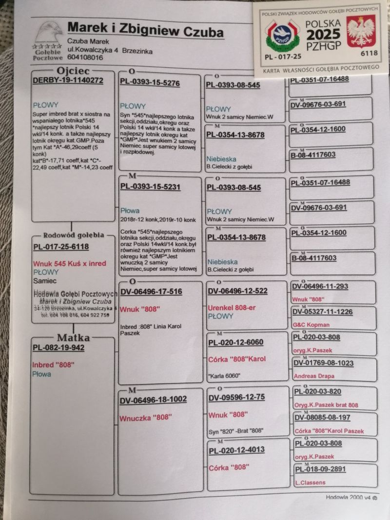 Płeć: samiec Hodowca - rasa: Oryg Czuba Marek Zakończenie: 6.11.2025 godz. 21:03