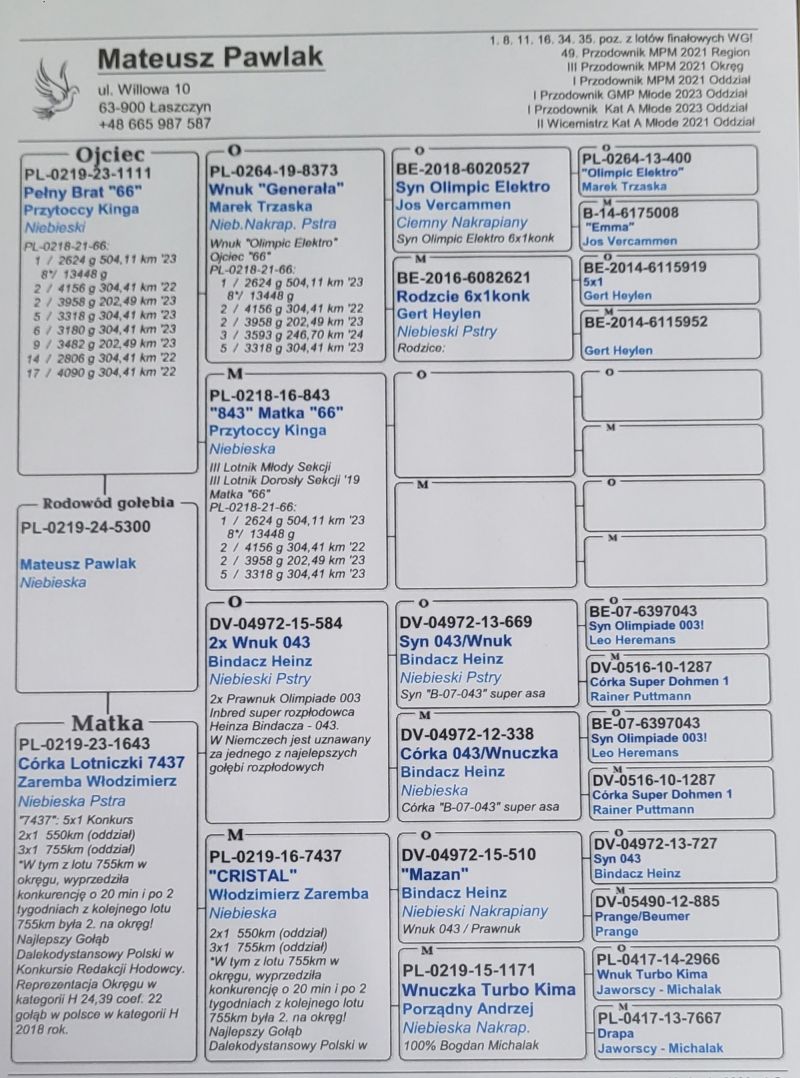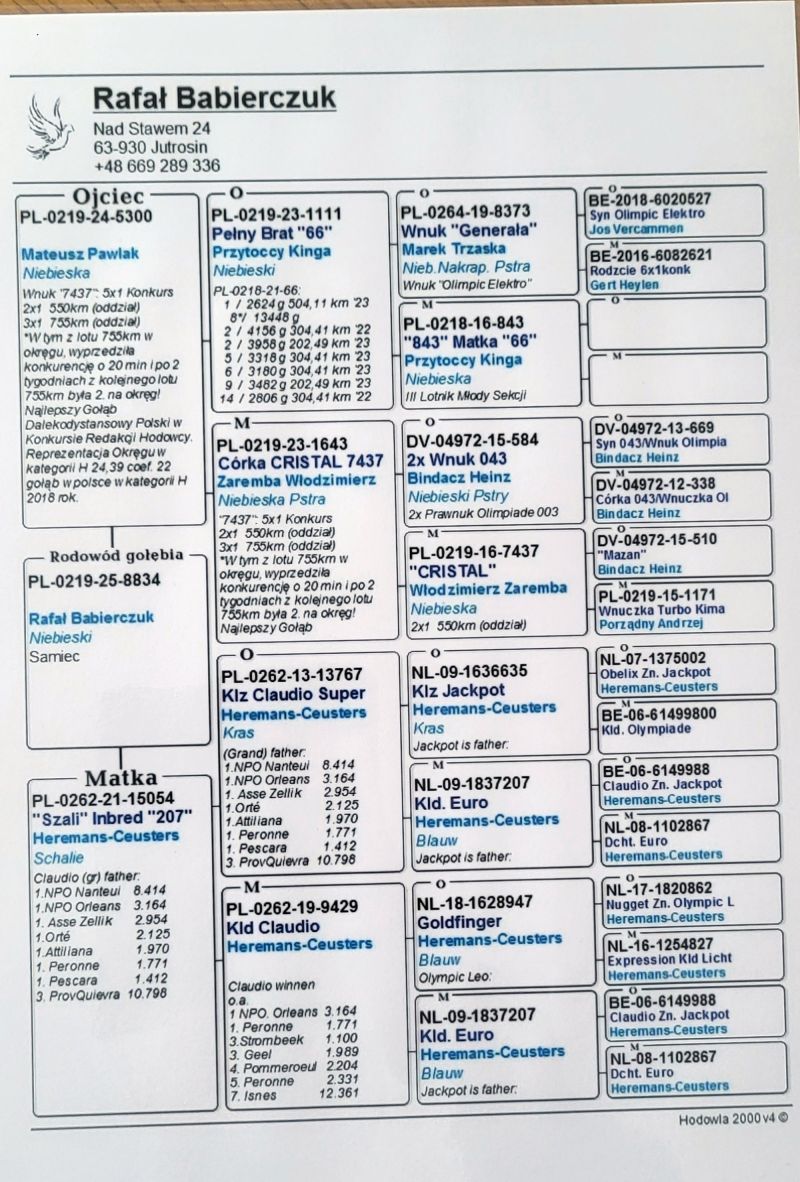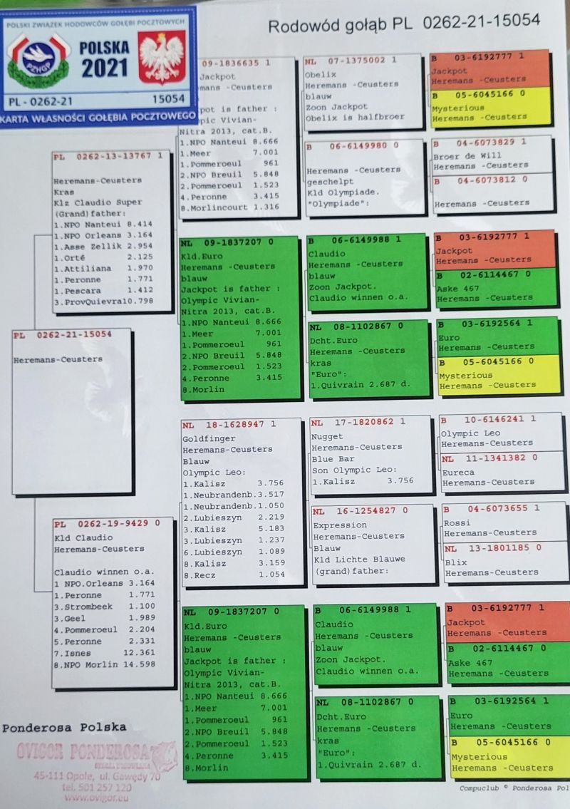 PL-0145-22-3286 - oryg.Radosław Rozniata - Czołowa Hodowla Okręgu,Regionu,MP - Gołębie L.Claessens & Ad Schaerlaeckens