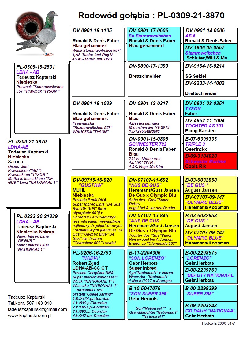 Oryginalny gołąb z hodowli Tadeusza Kapturskiego. Szczegóły pochodzenia w rodowodzie. Więcej informacji pod nr tel.: 507183810 ***transport kurier 165 zł