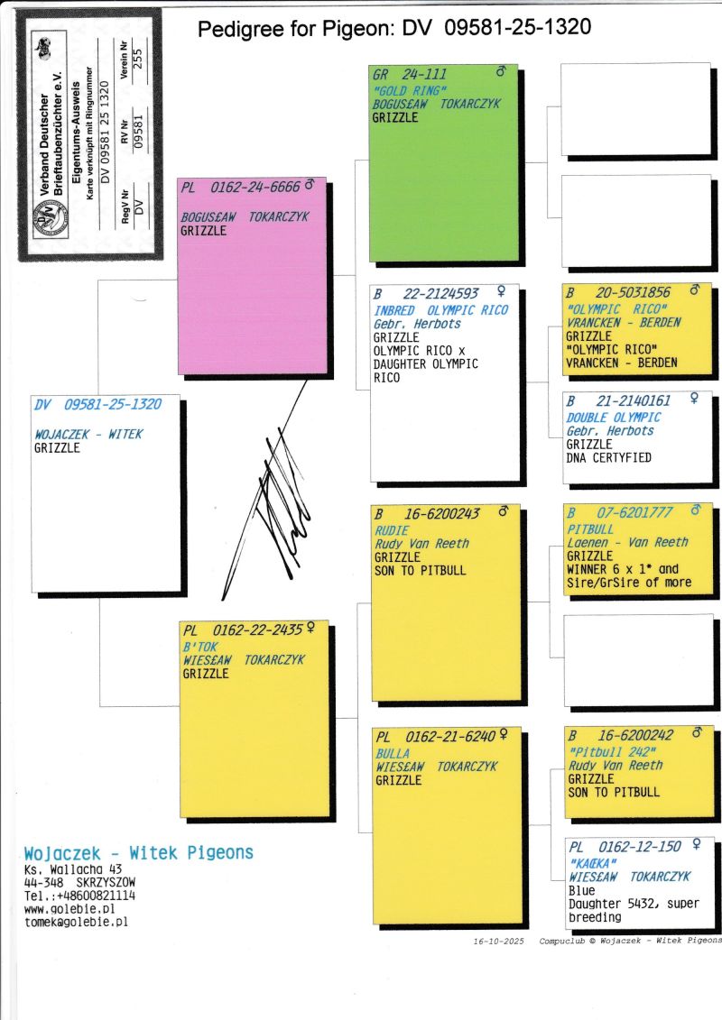 DV-09581-25-1320 - wnuk "Olympic Rico" Vracken - Berden x wnuczka "Pitbull" R. van Ruuth
