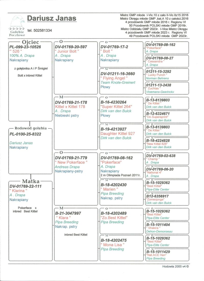 Oryginalny gołąb z hodowli Dariusz Janas . Szczegóły pochodzenia w rodowodzie . Więcej informacji pod nr. tel. 502581334 . oferowany gołąb to prawdopodobnie samiec ... transport firmą kurierską .