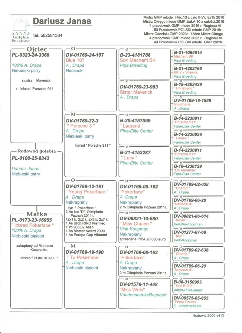 Oryginalny gołąb z hodowli Dariusz Janas . Szczegóły pochodzenia w rodowodzie . Więcej informacji pod nr. tel. 502581334 . oferowany gołąb to prawdopodobnie samica ... transport firmą kurierską .