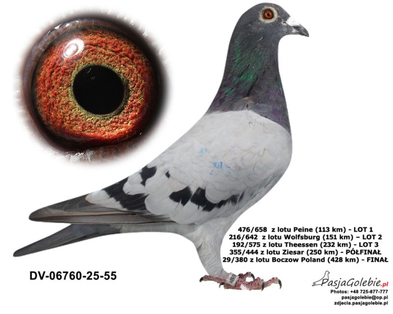 Osiągnięcia gołębi wypisane na zdjęciu.