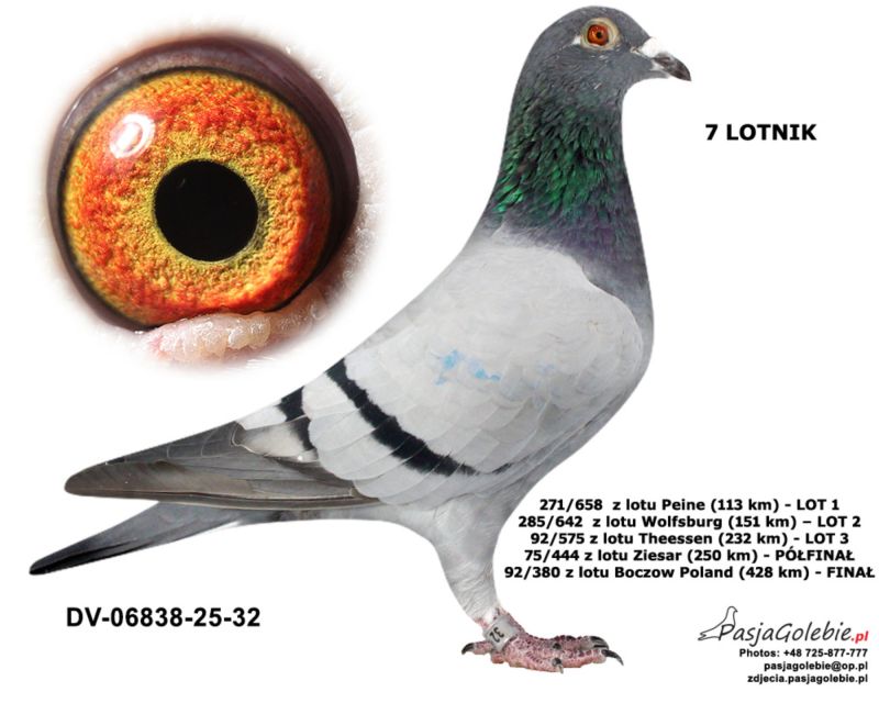 Osiągnięcia gołębi wypisane na zdjęciu.