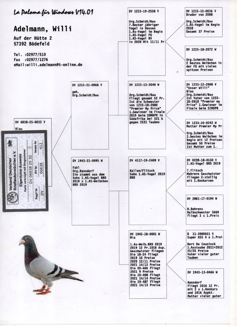 Płeć: młody gołąb Hodowca - rasa: WG Ostwestfalen Derby 2025 Zakończenie: 14.11.2025 godz. 19:00