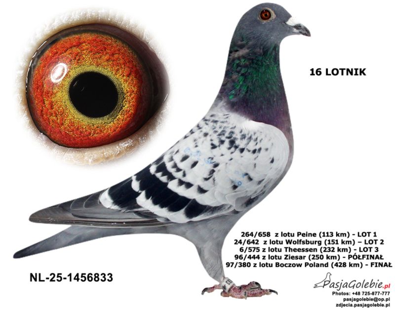Osiągnięcia gołębi wypisane na zdjęciu.