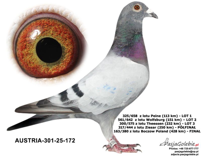 Osiągnięcia gołębi wypisane na zdjęciu.