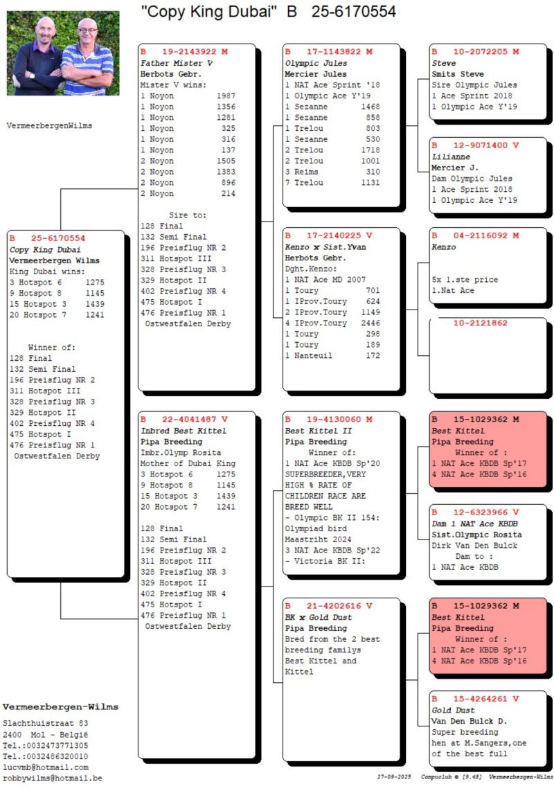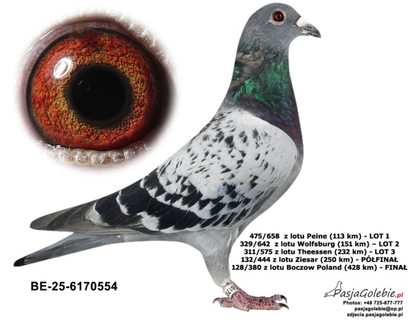 Osiągnięcia gołębi wypisane na zdjęciu.