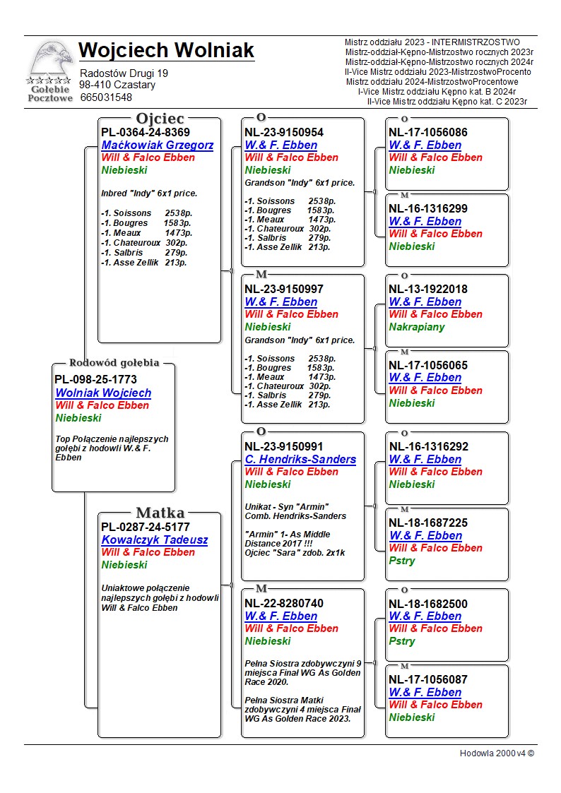 PL-098-25-1773 - Top Połączenie najlepszych gołębi z hodowli W.& F. Ebben