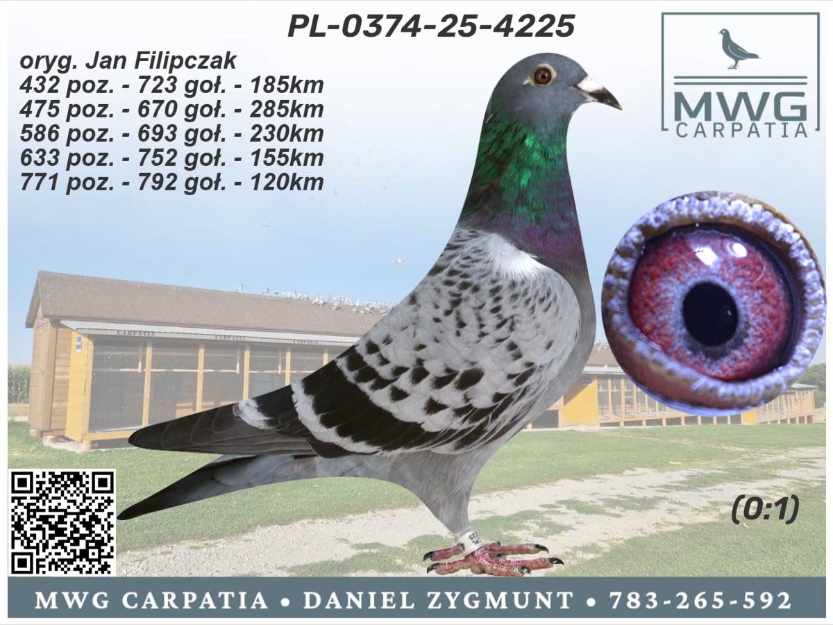 | Lot | Data | Dystans [km] | Ilość gołębi | Pozycja | Prędkość [m/min] |