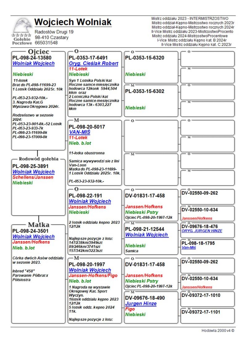 Oryginalny gołąb z hodowli Wolniak Wojciech PZHGP Oddział 098 Kępno. Szczegóły pochodzenia w rodowodzie. Możliwa wysyłka-kurier 150zł.Maksymalna ilość gołębi w paczce to 6szt.kontakt: 665-031-548 zapraszam do licytacji.