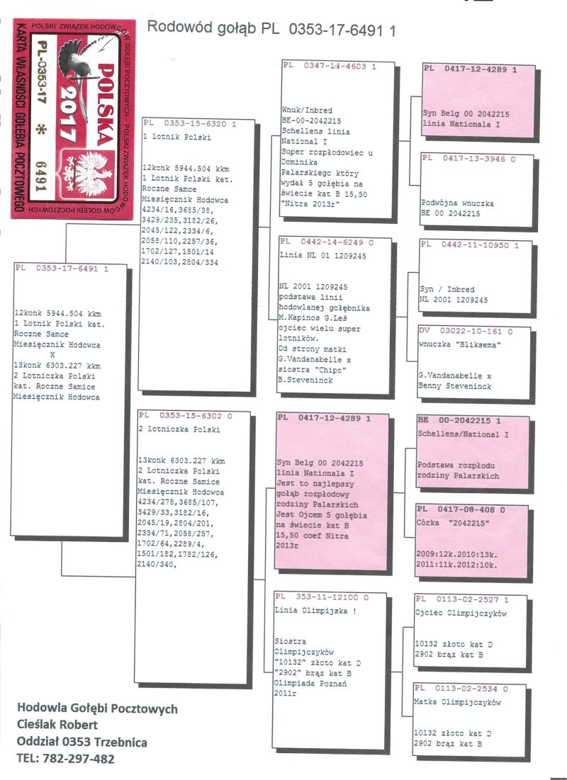 Oryginalny gołąb z hodowli Wolniak Wojciech PZHGP Oddział 098 Kępno. Szczegóły pochodzenia w rodowodzie. Możliwa wysyłka-kurier 150zł.Maksymalna ilość gołębi w paczce to 6szt.kontakt: 665-031-548 zapraszam do licytacji.