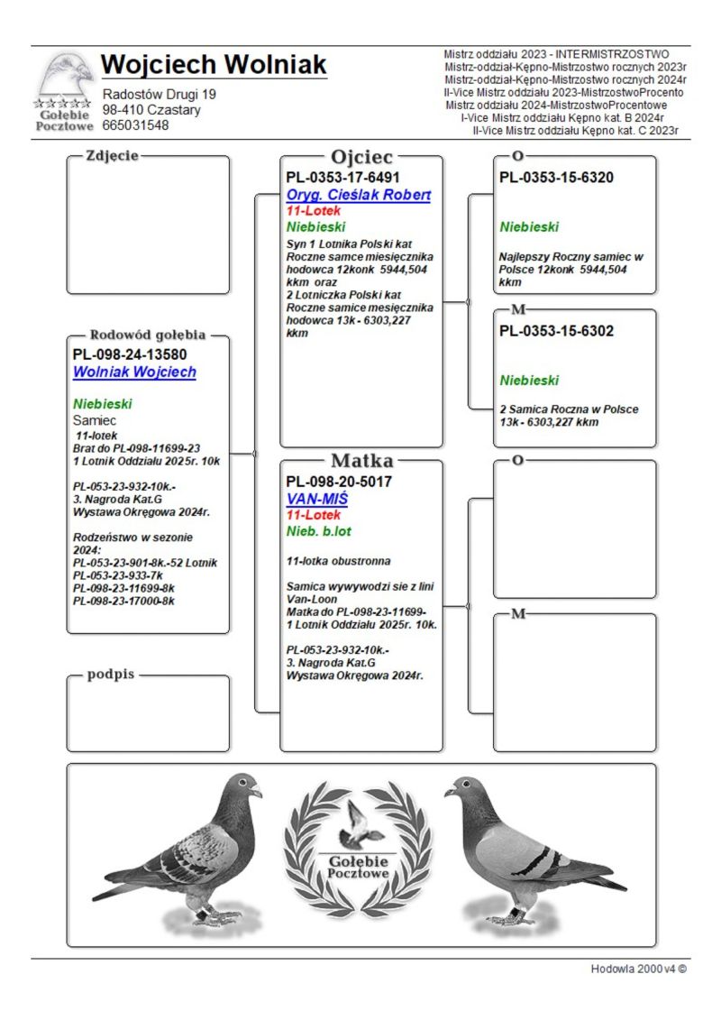 PL-098-25-7249 - Wnuk super lotniczki: kat.B 2,5,3,5 na oddział kat.C i M 1,2,3,3,5,2,3,5 K.Kijowski/De Laere x Grzeschik