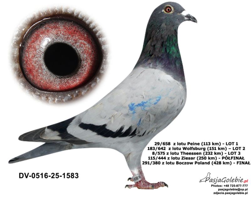 Osiągnięcia gołębi wypisane na zdjęciu.