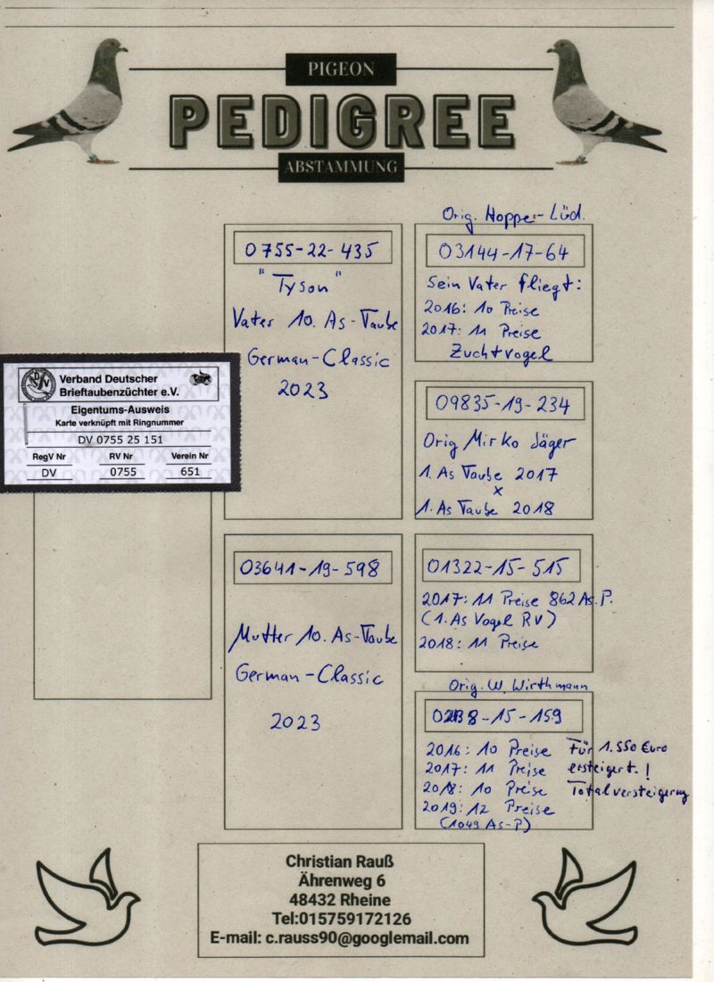Płeć: młody gołąb Hodowca - rasa: WG Ostwestfalen Derby 2025 Zakończenie: 15.11.2025 godz. 19:44