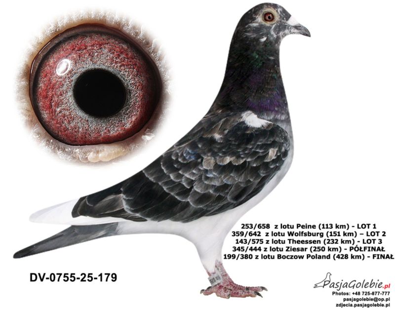 Osiągnięcia gołębi wypisane na zdjęciu.