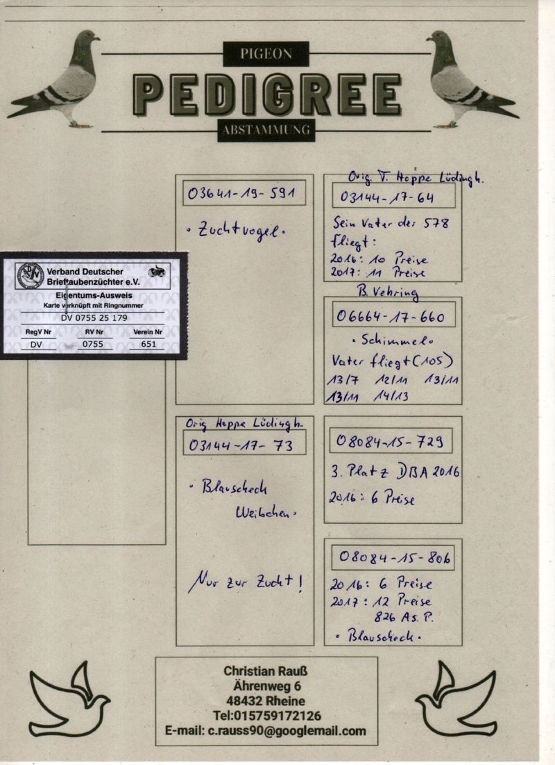 Płeć: młody gołąb Hodowca - rasa: WG Ostwestfalen Derby 2025 Zakończenie: 15.11.2025 godz. 19:42