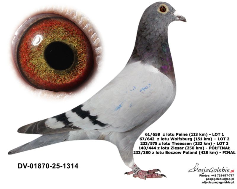 Osiągnięcia gołębi wypisane na zdjęciu.