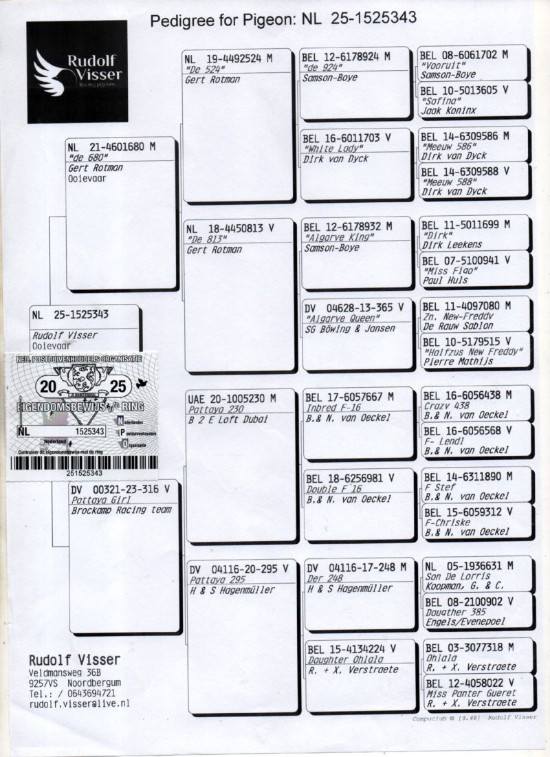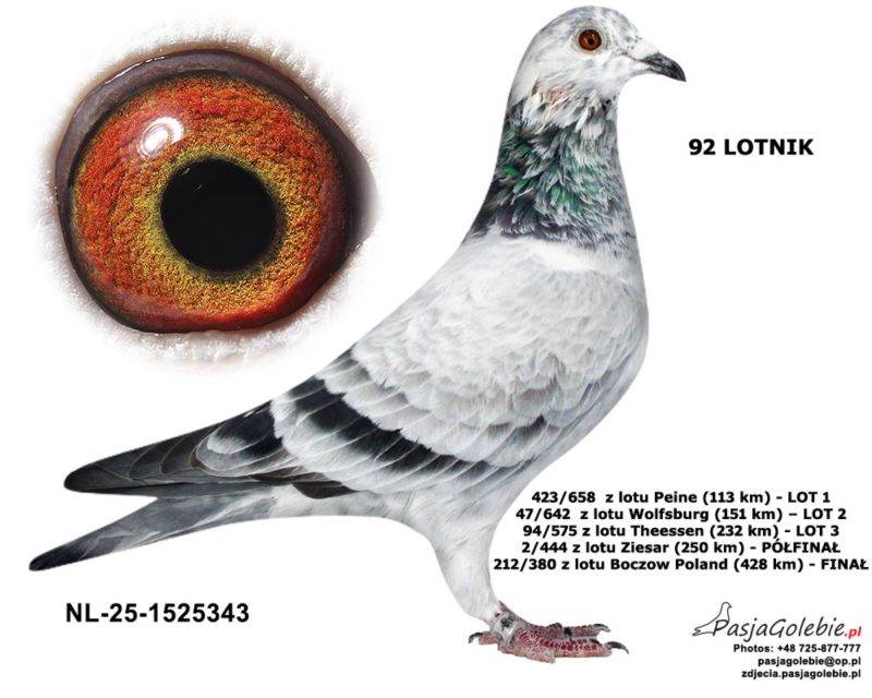 Osiągnięcia gołębi wypisane na zdjęciu.