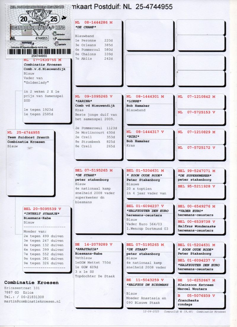 Osiągnięcia gołębi wypisane na zdjęciu.
