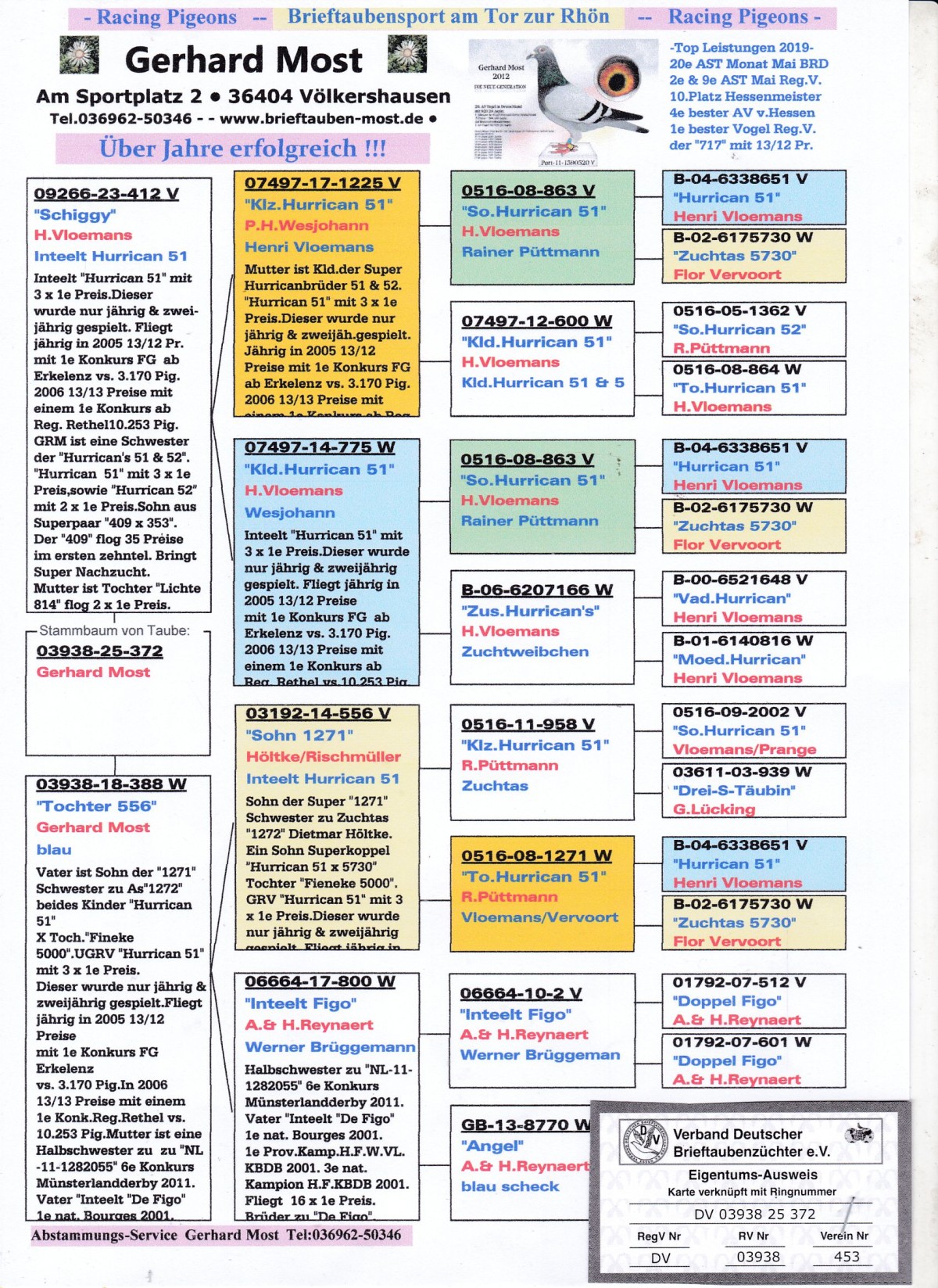 oryg. Gerhard Most (Vloemans/ Reynaert), linia "Hurrican 51", "De Figo" Szczegóły pochodzenia w rodowodzie. UWAGA!!! - płeć gołębia określona jest prawdopodobnie. Gołąb jest sprzedawany bezpośrednio od hodowcy i znajduje się już w Polsce, można go obejrzeć w miejscowości Zblewo (woj. pomorskie), po wcześniejszym kontakcie telefonicznym. Sprzedający może zorganizować transport gołębia w cenie ok. 150 - 200 PLN w zależności od ilości gołębi lub można go odebrać osobiście. Więcej informacji o gołębiu i transporcie pod nr tel.: 511 607 710.