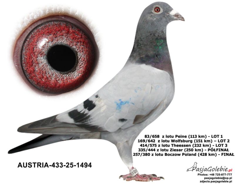 Osiągnięcia gołębi wypisane na zdjęciu.