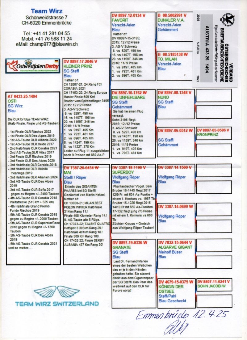 Płeć: młody gołąb Hodowca - rasa: WG Ostwestfalen Derby 2025 Zakończenie: 16.11.2025 godz. 19:28