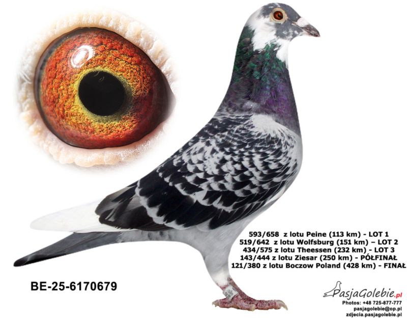 Osiągnięcia gołębi wypisane na zdjęciu.