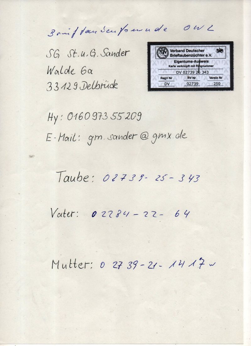 Płeć: młody gołąb Hodowca - rasa: WG Ostwestfalen Derby 2025 Zakończenie: 16.11.2025 godz. 19:09
