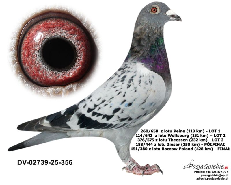 Osiągnięcia gołębi wypisane na zdjęciu.