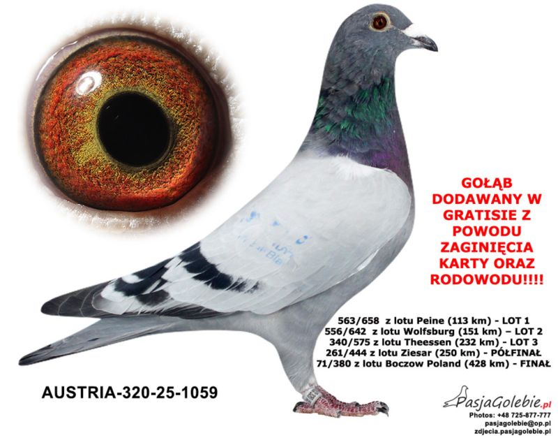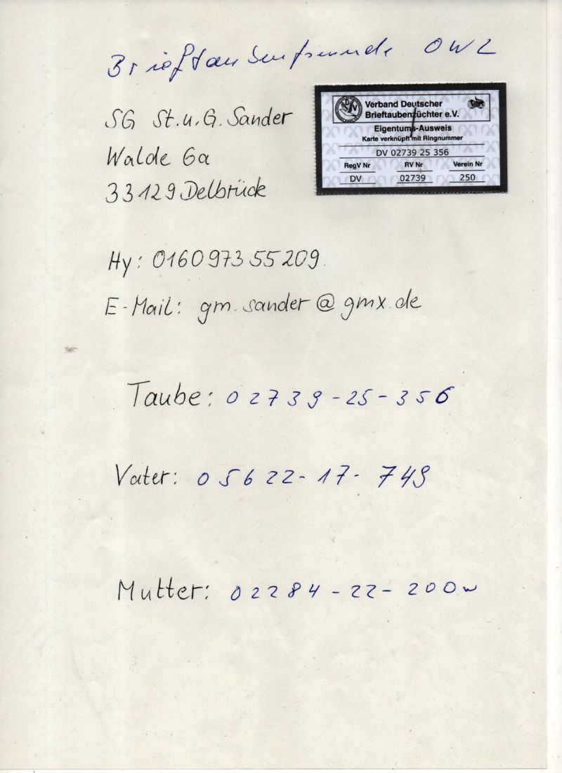 Płeć: młody gołąb Hodowca - rasa: WG Ostwestfalen Derby 2025 Zakończenie: 16.11.2025 godz. 19:02